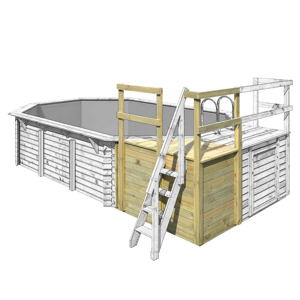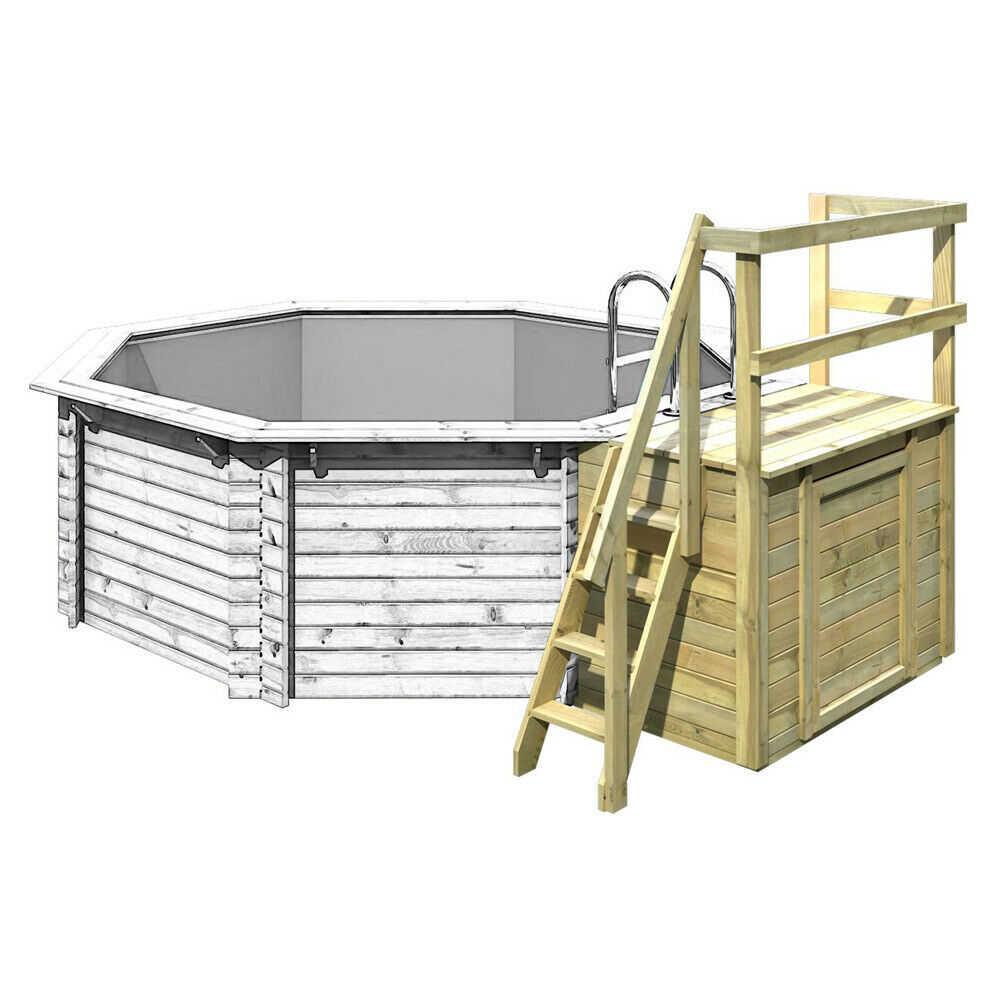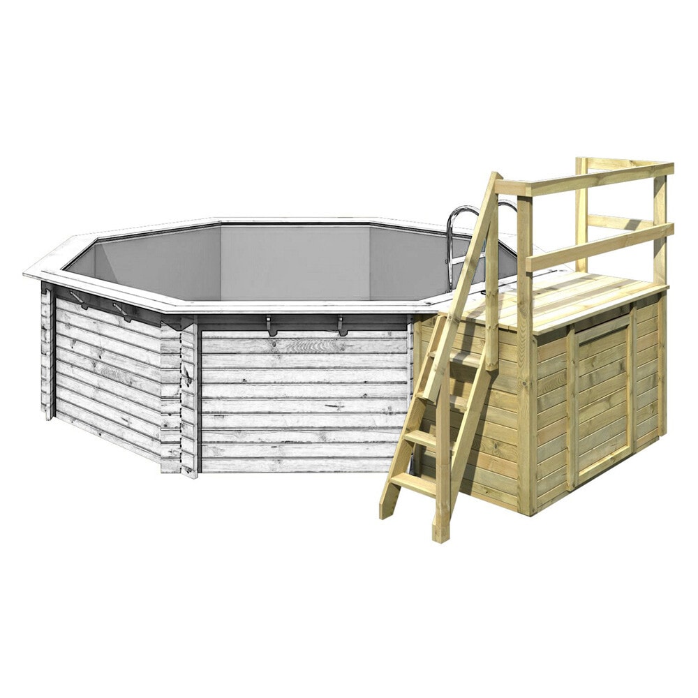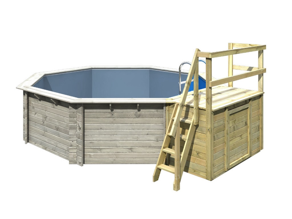 Entscheiden Sie sich für einen Aufstellpool, haben Sie das Problem, dass Sie mithilfe einer Leiter die Poolwand überwinden müssen, um in den Pool hinein zu kommen. Sie brauchen somit außen am Pool sowie im Pool eine Leiter. Rings um die Poolumrandung herum haben Sie aber keine Möglichkeit, etwas abzustellen oder abzulegen. Sie müssten die Sachen auf die Erde packen oder sich entsprechende Hilfsmittel zur Seite stellen, um diese zu nutzen. All das ist aufwendig, sodass eine Terrasse rund um den Pool durchaus sinnvoll erscheint. Sie sind dann mit der Terrasse und dem Pool auf einer Ebene und können die Terrasse gleichzeitig als Sonnendeck nutzen.