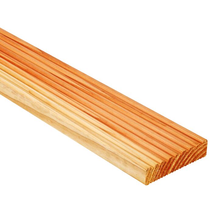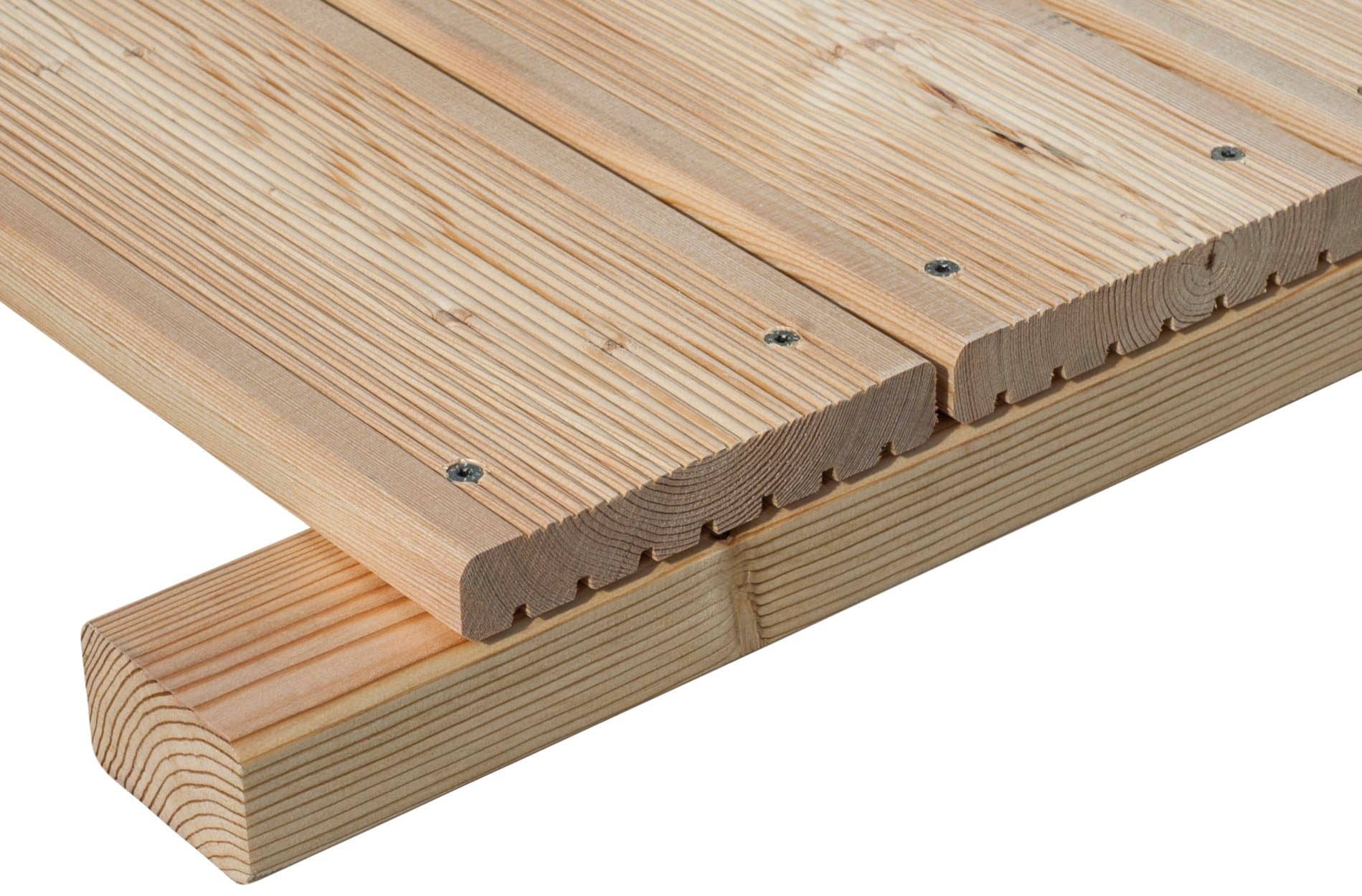 - Holz der Douglasie in orange-roter Optik ist sehr langlebig und witterungsbeständig