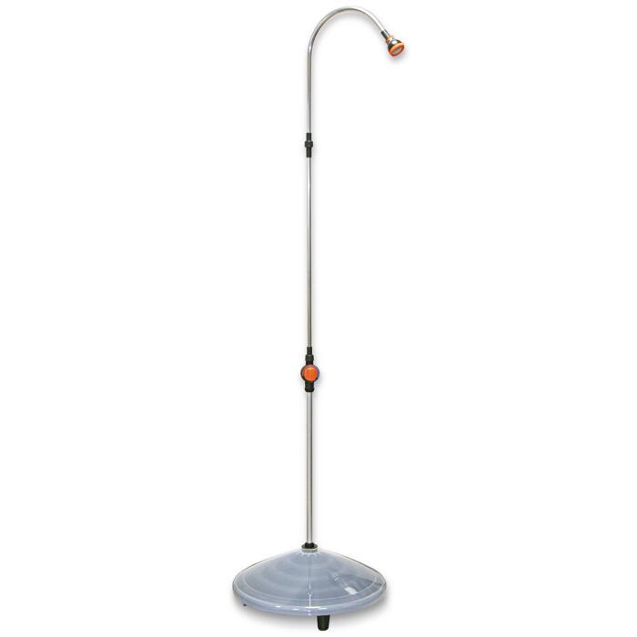 Wenn die solare Gartendusche flexibel von einem Ort zum anderen verstellbar sein soll, greifen Sie zu einem mobilen Modell. Freistehende, portable Solarduschen sind zur Stabilisierung in der Regel mit einem Standfuß ausgestattet.